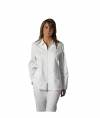Casaca señora entallada, cuello caja, manga corta, con botones, dos bolsillos inferiores. Combinada en las vistas delanteras. Composición: 65% poliéster 35% algodón.